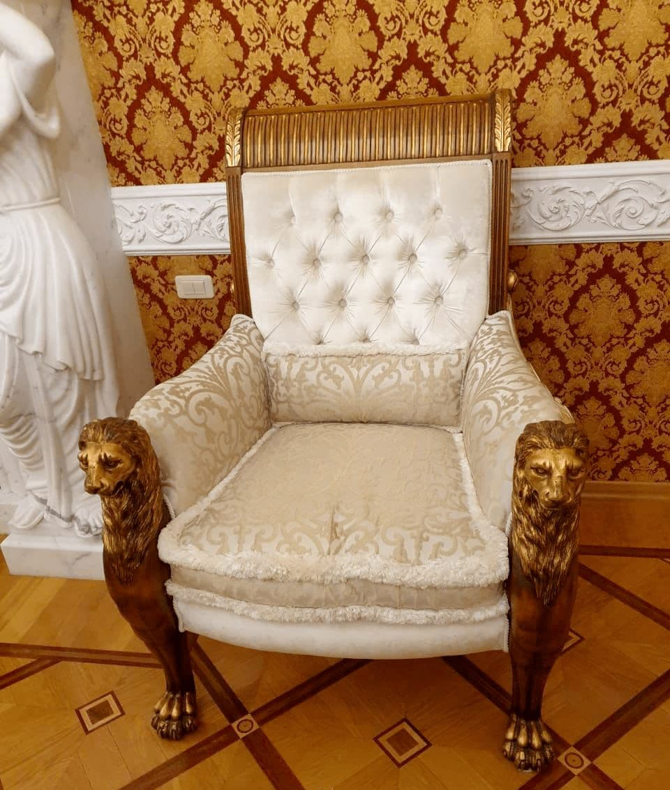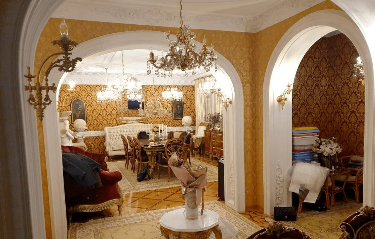 Во время обыска в доме депутата силовики обнаружили гипсовые статуи и позолоченные люстры. Сам интерьер дома оформлен в псевдоклассическом стиле «под старину». Также там обнаружили портрет самого Латышева.
